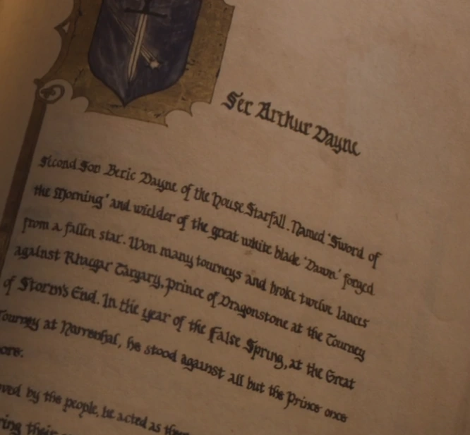 In der Saga Das Lied von Eis und Feuer ist kein Charakter mit diesem Namen bekannt und der Vater von Ser Arthur und Ashara Dayn wird nicht namentlich erwähnt. In den Büchern ist Arthurs Neffe Edric DaynEuF der Lord von Sternfall und das Oberhaupt des Hauses.