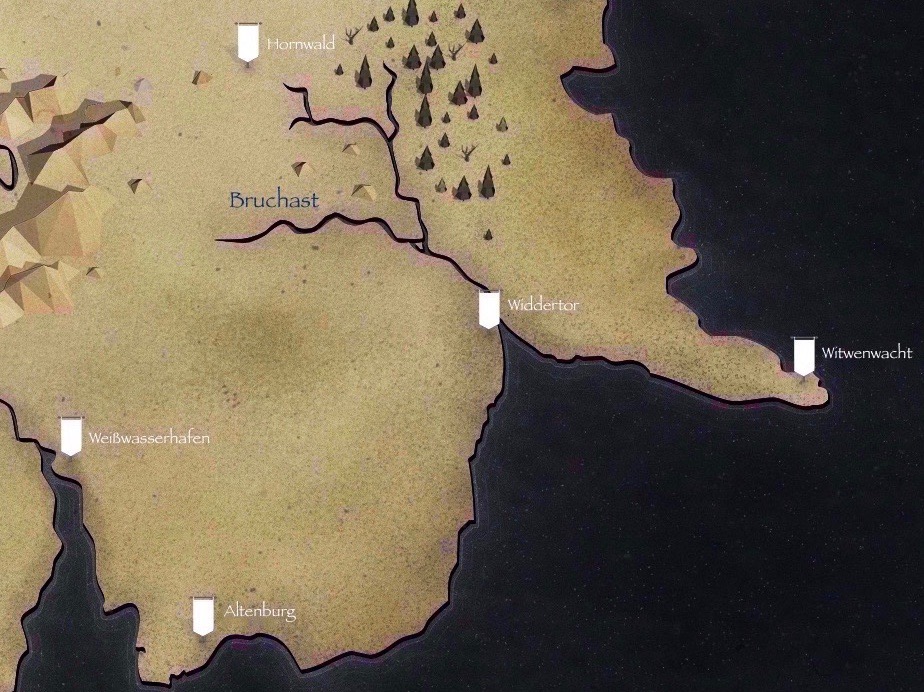 | Regionen | Bachlande • Einsame Berge • Eng • Flintklippen • Graue Klippen • Hornwald (Wald) • Hügellande • Krakenkap • Schenkung • Seedrachenhorn • Steinige Küste • Wolfswald |