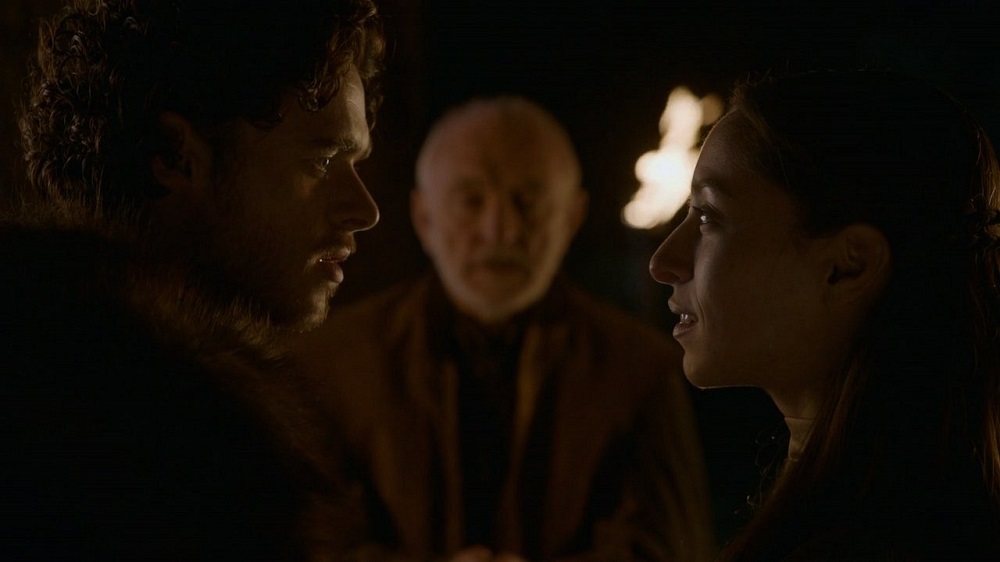 Robb Stark bricht den Ehevertrag mit dem Haus Frey und ehelicht Talisa Maegyr.