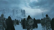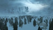 Das Lager der Nachtwache wurde von den Horden der Wiedergänger überrannt. Nur eine Handvoll Männer überlebten den Angriff und wurden von Lord Kommandant Jeor Mormont zum Rückzug zur Mauer gesammelt, um vor der drohenden Gefahr zu warnen. Samwell, der die Schlacht ebenfalls überlebt hatte, rannte durch den Schneesturm und entdeckte dabei einen Mann der Nachtwache, doch musste er feststellen, dass dieser enthauptet war. Ein Wiedergänger tauchte auf und griff Sam mit seiner Axt an, der jedoch vom Schattenwolf Geist angriffen wurde und Sam somit rettete. Mormont und seine verbliebenen Männer fanden Sam, der ausgesandt worden war, um die Raben loszuschicken. Sam musste gestehen, dass es ihm nicht gelungen war, sehr zum Missfallen des Lord Kommandanten.[2]