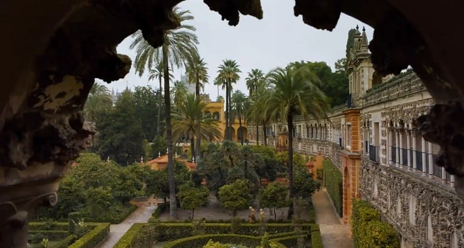 Die Wahl für den Drehort für die Wassergärten fiel auf den Real Alcázar von SevillaWp wegen seiner beeindruckenden Gartenanlage. Es ist der mittelalterliche Königspalast von Sevilla, der wird bis heute von der spanischen Königsfamilie als offizielle Residenz genutzt wird. Zwar erhielt die Filmcrew als erste überhaupt die Drehgenehmigung der spanischen Regierung, aber wegen des Weltkulturerbe-Status von Alcázar stellte sich der Dreh als sehr anspruchsvoll heraus.[8]