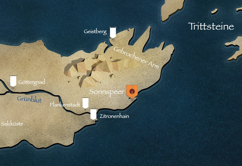 Wie in der Serie sind Wassergärten die private Residenz des Hauses Martell. Sie liegen am Strand des Sommermeeres, etwa drei Wegstunden westlich von der Küstenstraße.