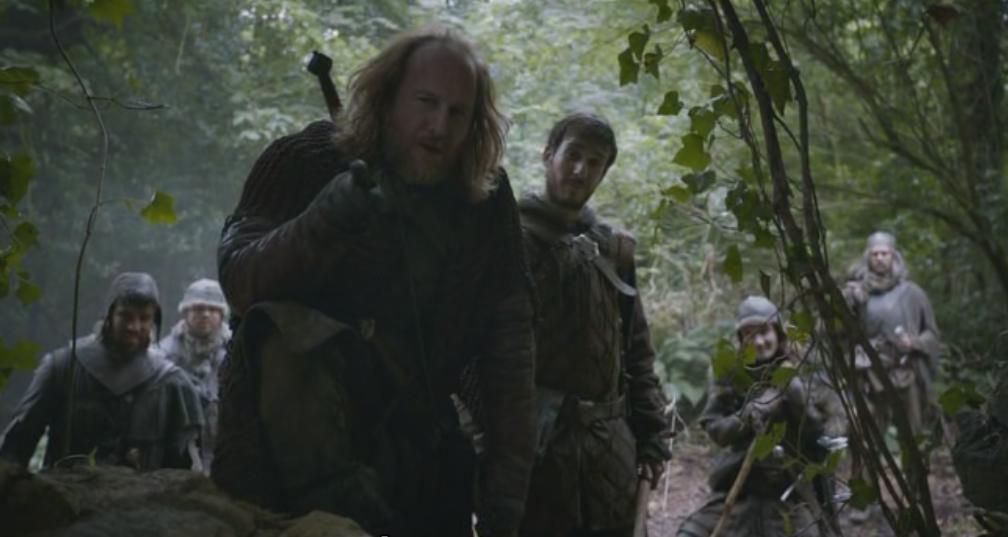 Beric Dondarrion e Thoros de Myr preparam-se para enforcar os ex-membros da Irmandade, até serem interrompidos por Sandor Clegane.