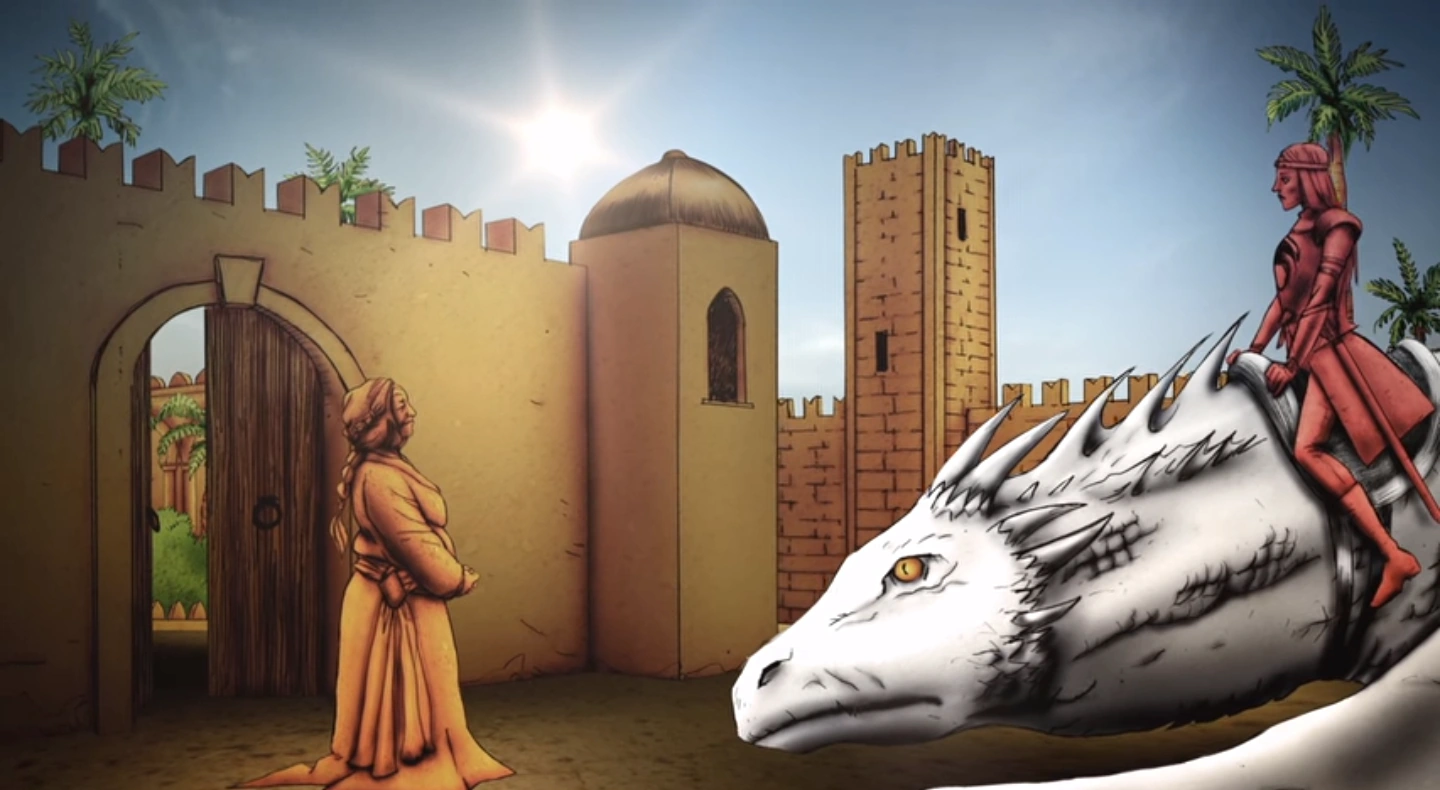 Когда Эйгон вторглся в Вестерос, большинство королей пали перед их драконами, за исключением Севера и Дорна. Король Севера сдался добровольно, и тогда сестра-жена Эйгона Рейнис прилетела на своём драконе Мераксесе в Дорн, чтобы завершить объединение королевства и потребовала от Мерии Мартелл капитуляции. В ответ принцесса Дорна заявила, что не собирается ни сражаться, ни преклонять колено. Рейнис пригрозила, что в следующий раз Таргариены придут с огнём и кровью, на что Мерия посоветовала ей убраться восвояси и больше никогда не возвращаться.