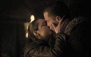 In the books, Arya describes Gendry as her "only true friend." The two form some bond after Arya entrusts Gendry with her true identity, though Arya was ready to kill him. Although their relationship in the novels is platonic, there are several hints the point towards a romantic relationship. Arya becomes jealous when Bella, a prostitute, offers to have sex with Gendry, who rejects this offer. Gendry also becomes jealous when Edric Dayne shows interest in Arya, which is heightened by their class difference. There is also a love song that only appears once in the series, which is after Arya and Gendry playfully wrestle in the forge. The TV series didn't overtly play up a full-fledged "romance" between the two, though Gendry becomes one of Arya's few friends and, as in the novels, she is pained when he chooses to stay behind with the Brotherhood.