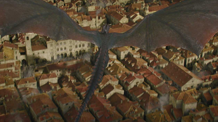 Drogon flying over King's Landing.