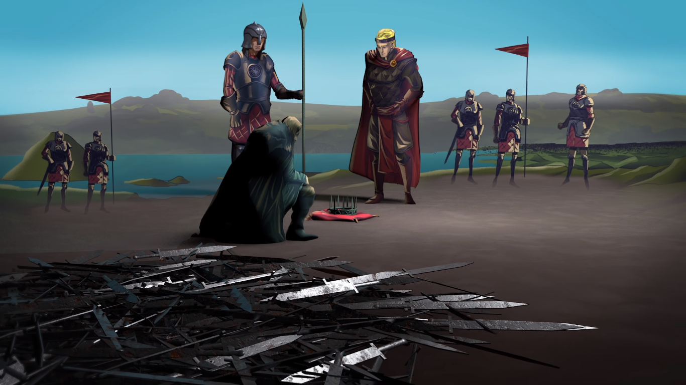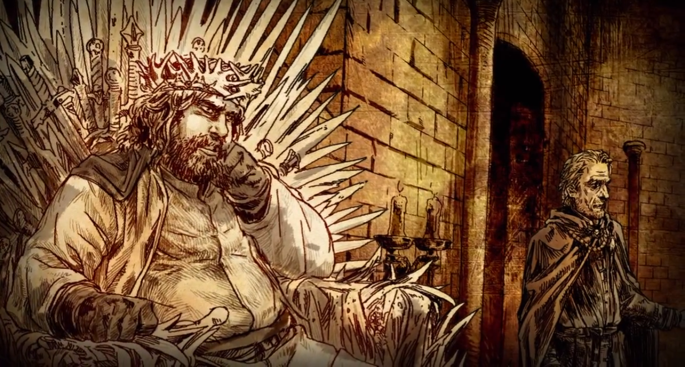King Torrhen Stark peacefully bends the knee to the Targaryens.