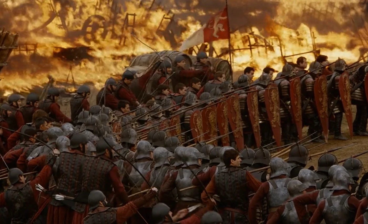 Lannister armies seem to be more well-equipped than any other armies that Westeros could muster. This is particularly evidenced by the high quality arms and armor forged directly in the Crownlands and Westerlands, by skilled smithies and armorers. An advanced degree of standardization and role differentiation between cavalry, heavy infantry, archers and sappers is clear.