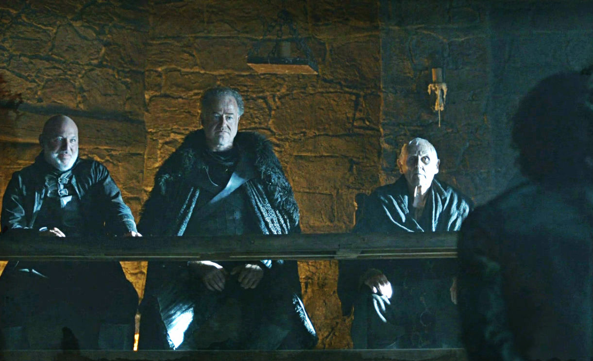 Janos warns Ser Alliser Thorne that since Snow is popular amongst the Night's Watch, this will give him an edge over him when a new Lord Commander is elected. Slynt suggests sanctioning Jon's expedition to Craster's Keep so the mutineers may kill Jon.[8]