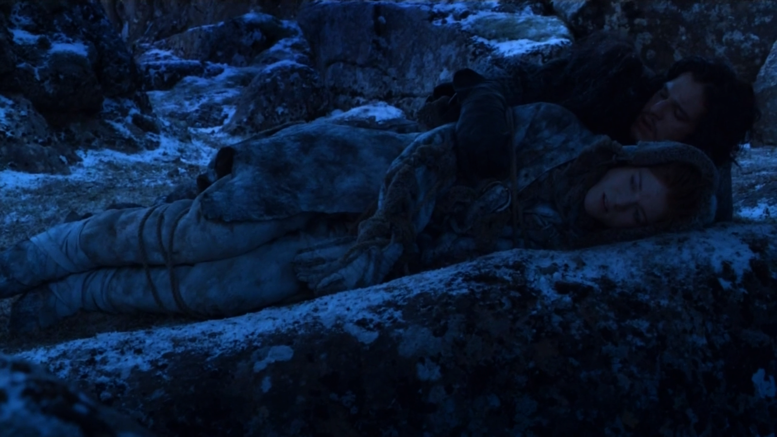 Jon and Ygritte share body heat.