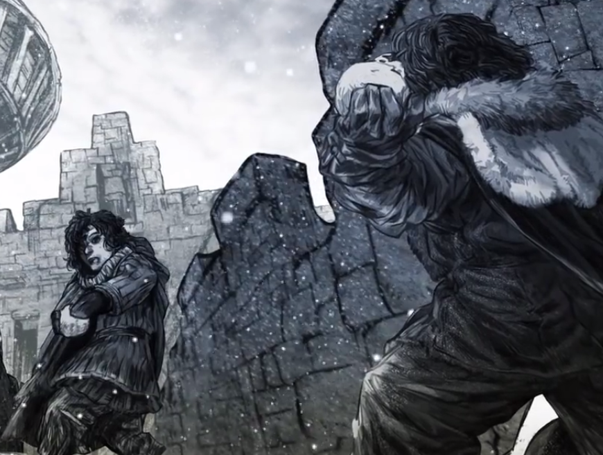 Jon and Robb play with snowballs in their childhood.