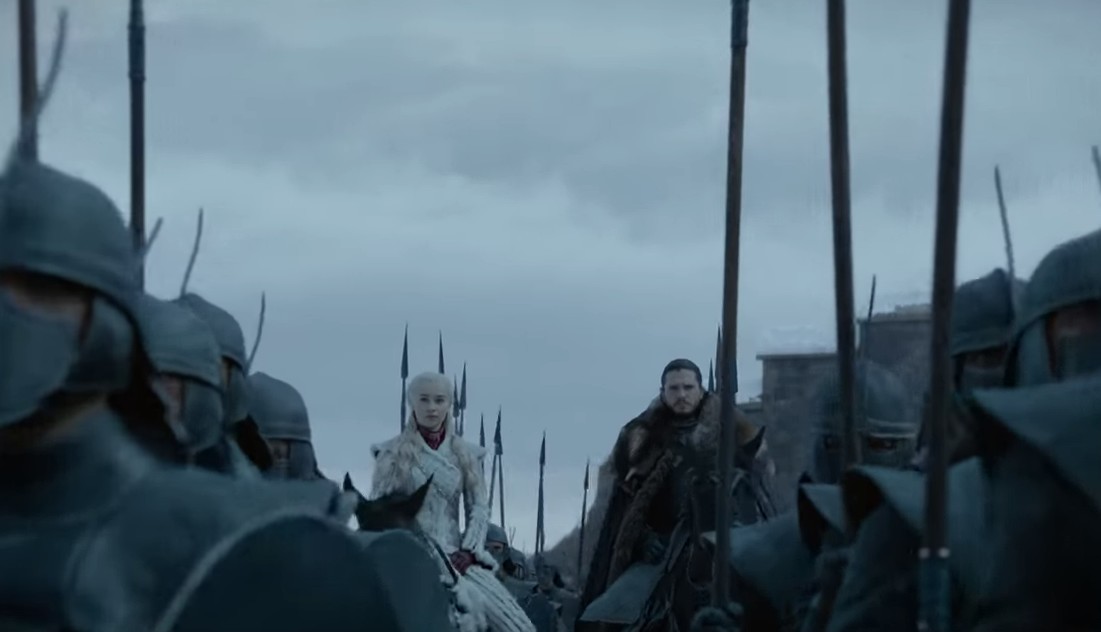 Freed from his Night's Watch vows, Jon and his half-sister Sansa Stark retake Winterfell from House Bolton, restoring House Stark's dominion over the North. Jon is declared King in the North.