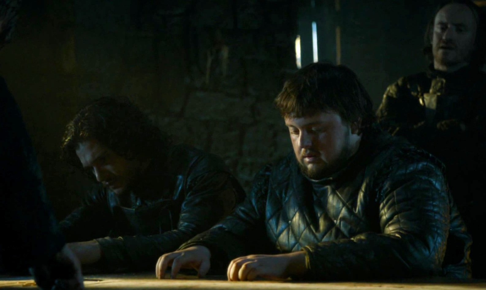 Benjen stands with Jon on his first watch and tells him that he is going ranging North of the Wall. Jon is keen to accompany him, but Benjen insists that he complete his training. Tyrion helps Jon see that he is no better than the recruits, but has been afforded more advantages than them due to his highborn upbringing. Jon offers to train some of his new brothers and Pypar and Grenn accept.[12] He also befriends the fat and bookish coward Samwell Tarly when he arrives at Castle Black, and helps to protect him from the cruelty of Thorne. Thorne angrily tells Jon that going easy on Sam won't help him, and will risk getting him killed during the next winter.[13]