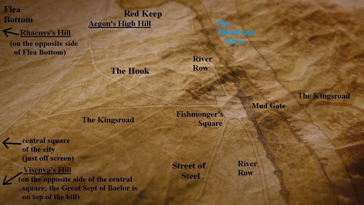 Flea Bottom is the largest slum district in the city. Davos Seaworth and Armeca hail from Flea Bottom.