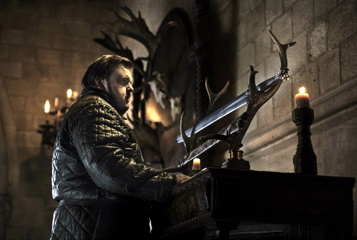 Samwell steals his father's sword Heartsbane before leaving with Gilly and Sam.