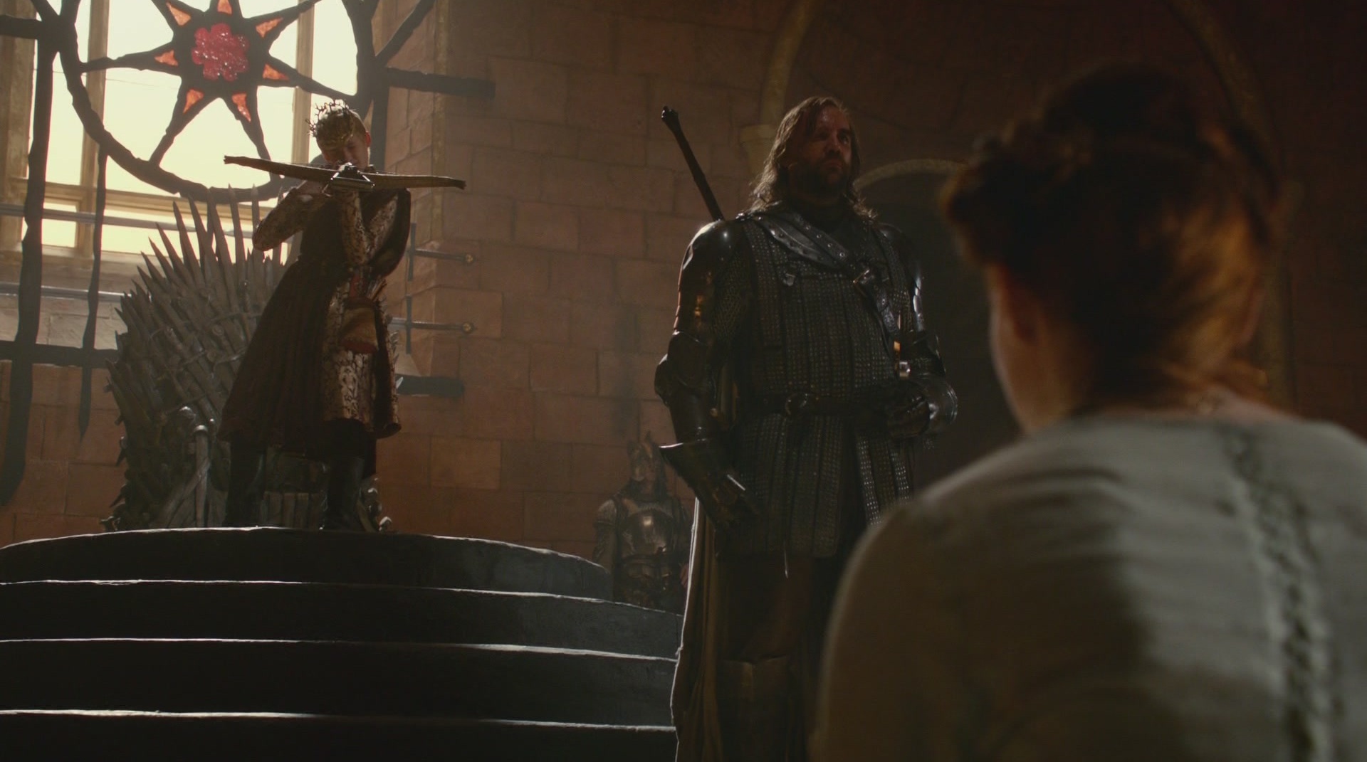 Sandor watches Joffrey's torture of Sansa.