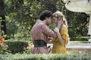 Trystane walks and flirts with his betrothed Myrcella in the Water Gardens during the argument between Ellaria Sand and Prince Doran Martell, unaware of the danger their union creates.[3] When Jaime Lannister and Bronn enter the Water Gardens, Trystane is again taking a walk with Myrcella, with Trystane suggesting they should ask Doran to have them married the next day. Myrcella asks if he only wants to marry her because they are both from Great Houses, but Trystane cuts her off with a passionate kiss. Doran, observing the happy couple, muses to Areo Hotah that they don't realize how much danger they are in and that they must be protected.