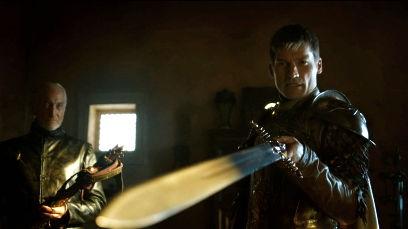 Tywin presents Oathkeeper to Jaime.