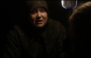 Varys is present when Eddard is arrested for treason after delivering Robert's proclamation naming him protector of the realm.[6] Varys visits Eddard in the dungeons. He is incredulous that Eddard trusted Littlefinger over him, and even more so that he warned Cersei what he was going to do. Eddard says that he wanted to extend mercy to Cersei's children, whom Robert would have killed if he'd known the truth. Varys bluntly tells Eddard that his mercy is what killed King Robert, to Eddard's shame. He also informs him that all of his household servants have been slaughtered, and his daughter Sansa taken prisoner, though he also informs him (truthfully) that his younger daughter Arya managed to escape the Red Keep, and not even his own spies can locate her. Varys then tells him that Catelyn also no longer holds Tyrion as her prisoner, meaning that the Starks have nothing to barter with for Eddard's life. When Eddard suggests that Varys should just kill him, Varys says, "Not today, my lord." As he departs, Eddard asks Varys who he truly serves. Varys, in a rare display of honesty, replies, "The realm, my lord. Someone must."[13]