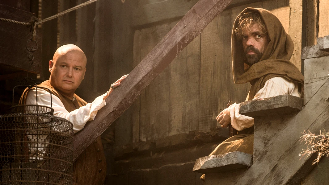 Varys and Tyrion on the walls.