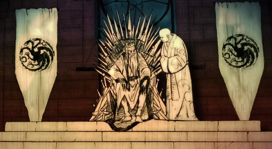 Varys advises Aerys during the Sack of King's Landing.