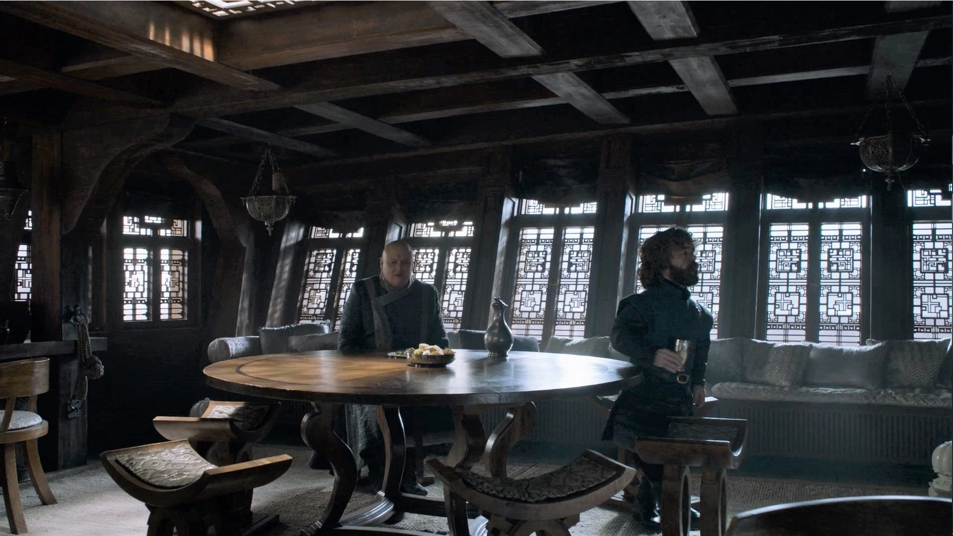 Tyrion and Varys plan their next steps for governing Meereen.