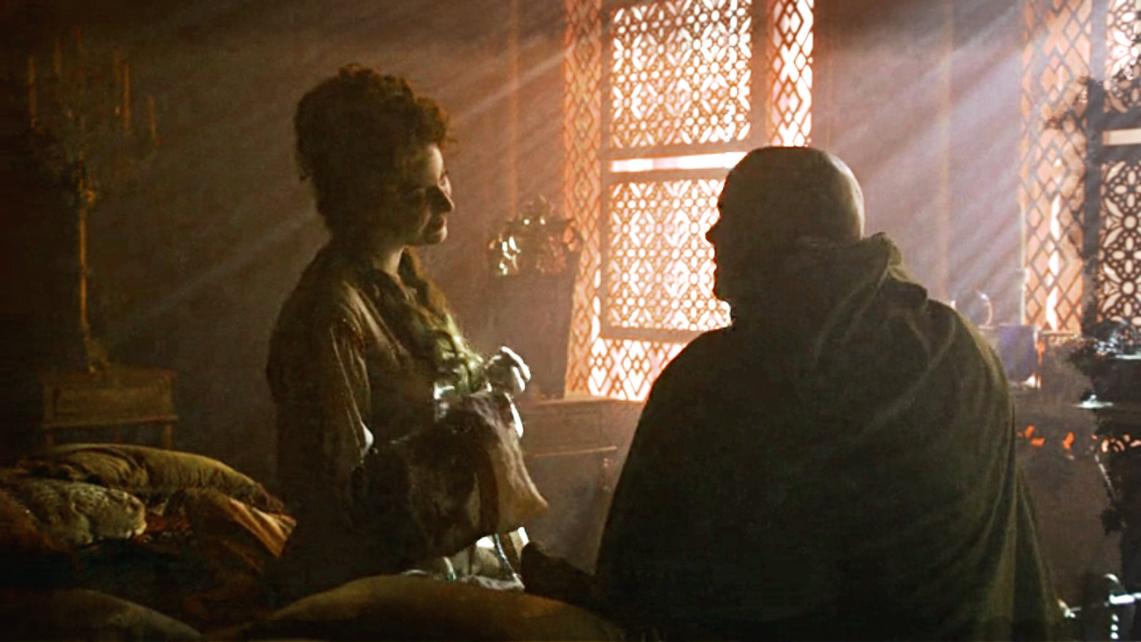 Varys gives Shae a bribe of diamonds to leave.