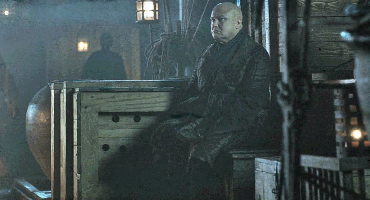 Varys on the ship with Tyrion.