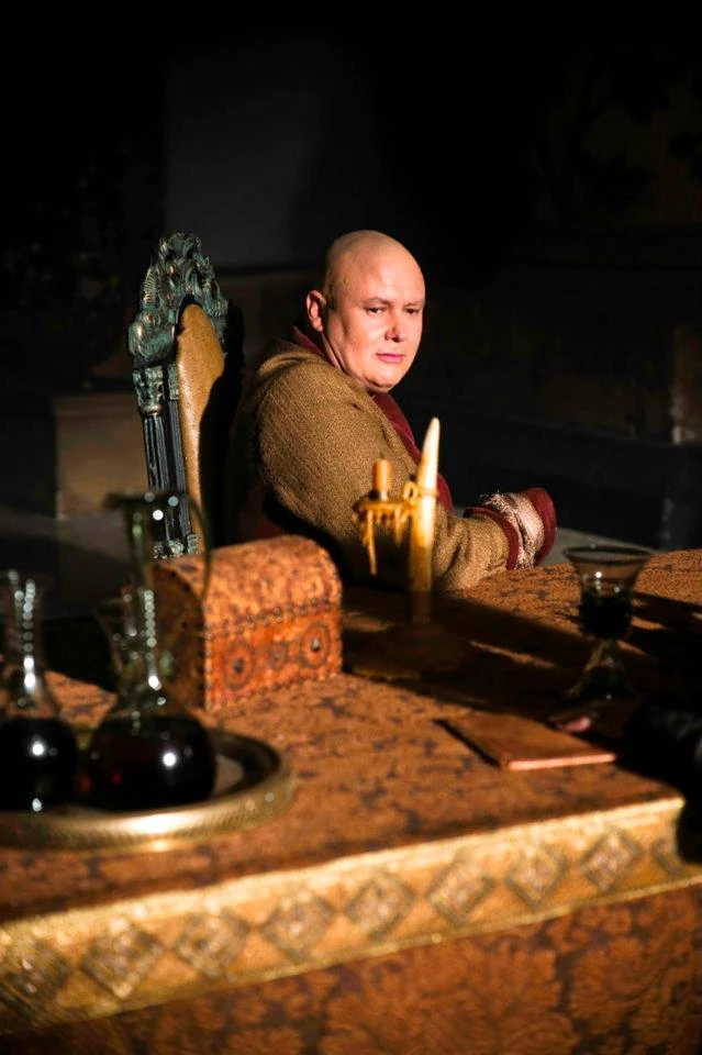 Varys is bald, soft, and fat, due to his castration. He often puts on the public persona of being nothing more than a pudgy man well suited to the pleasantries of court life; humble, obsequious, fawning, and a little effeminate. This is simply a facade that Varys has developed, which often leads those who do not know him well to underestimate him as a cheerful and vapid flatterer. In reality he is a cunning and ruthless manipulator of court politics, on-par with Master of Coin Petyr "Littlefinger" Baelish, with whom he frequently spars. Unlike Baelish, Varys insists that his goals are to achieve what he honestly feels is best for the realm, though of course, what he and the current ruler feel is best might be two separate things.[5]