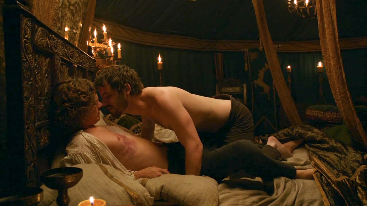 Renly tries to initiate sex with his lover Loras but is rebuffed. Loras reminds him of the importance of fathering an heir and goes to fetch his sister Queen Margaery. Margaery fails to seduce Renly. She is pragmatic about his homosexuality, and suggests including her brother in their love making, asserting the importance of producing an heir.